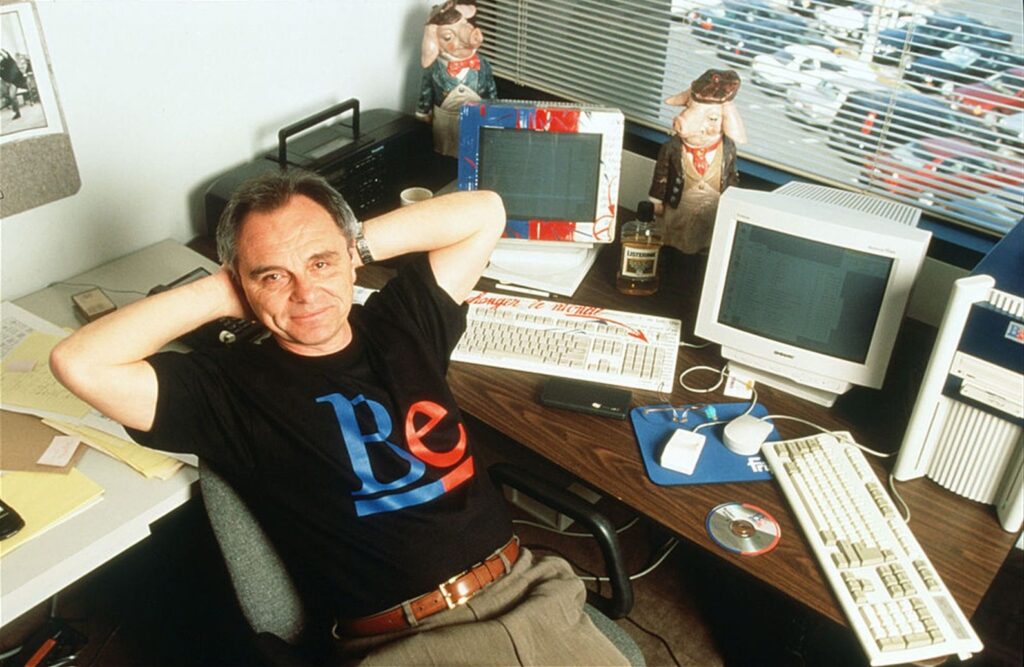 Jean-Louis Gassée at a BeBox computer (right) running BeOS. Photo: © Getty Images.