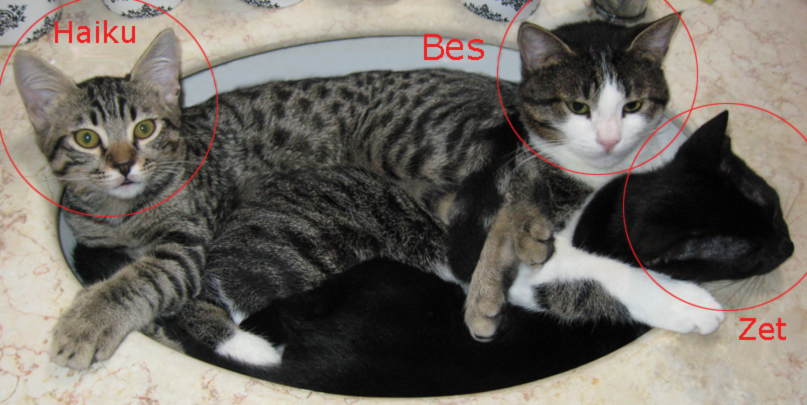According to long-standing tradition, I name my cats after BeOS-related systems. Pictured: Bes (BeOS), Zet (Zeta), and Guy (Haiku).